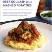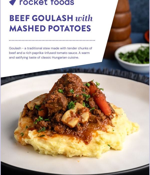 Vegetables (Mashed Potato 44% (Water, Salt, Butter, (Milk), Milk, Carrots, Mushroom, Onion, Garlic),Milk, Red Wine (2%) (Sulphites, Milk, Egg)(<0.5% Alcohol), Beef Goulash (Beef 42%, Tomato Puree, Canola Oil, Salt), Herbs and Spices, Continental Beef Boost (Sulphites), Cornstarch